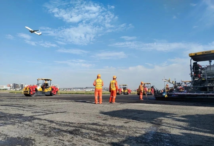 想象一下,航班在西跑道頻繁起降的同時(shí),數(shù)百名施工人員和數(shù)百輛設(shè)備,就在幾百米外忙碌作業(yè)。施工挑戰(zhàn),前所未有的嚴(yán)峻。傳奇,在這短暫的15天一一上演。不過,這傳奇的紙簿上,亦被烙上“徐工金”的身影。徐工成套道路機(jī)械,在此項(xiàng)高難度施工中,迎難而上、挑起重?fù)?dān)。