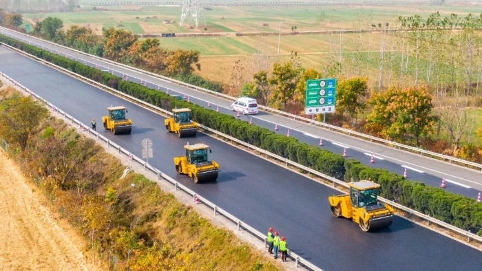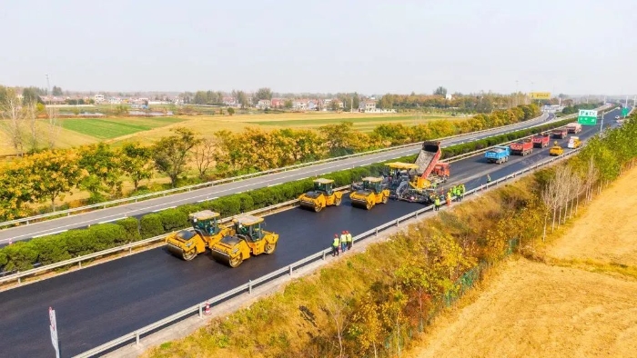 相對普通公路而言,高速公路作為高等級路面,在各項指標(biāo)上都有著更為嚴(yán)苛的施工要求。且此次高速公路改擴建工程為半封閉施工,連霍高速又是貫穿中國東西走向的交通要道,考慮到交通壓力和行車安全性,施工方選擇了徐工成套道路機械作為本路段瀝青攤鋪工程的主力軍,憑借超高的施工效率和完善的防撞系統(tǒng),保證施工安全性的同時,大大縮短了工期,推動該路段快速實現(xiàn)通車。