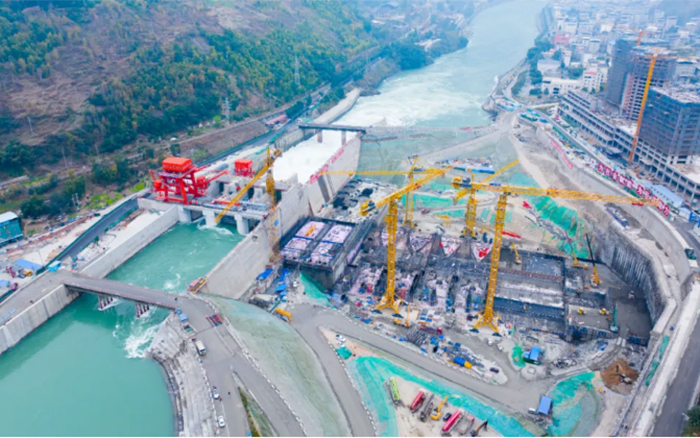 該水電站位于四川省樂山市金口河區(qū)境內,是四川省“十四五”重點建設項目,項目完成后,總裝機容量30萬千瓦,預計年平均發(fā)電量15.03億千瓦時,對促進國家清潔能源基地建設、實現“雙碳”目標意義重大。項目主要設有五孔泄洪閘、發(fā)電廠房、兩岸混凝土重力壩、魚道等水工建筑物,壩體最高54米。