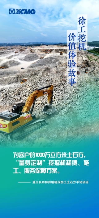 貴州遵義長嶺特殊鋼精深加工技改項目為貴州省2023年重點項目,土石方平場量1000多萬方,在整個建設(shè)過程中,徐工挖機為客戶“量身定制”租賃、施工、服務(wù)保障方案。