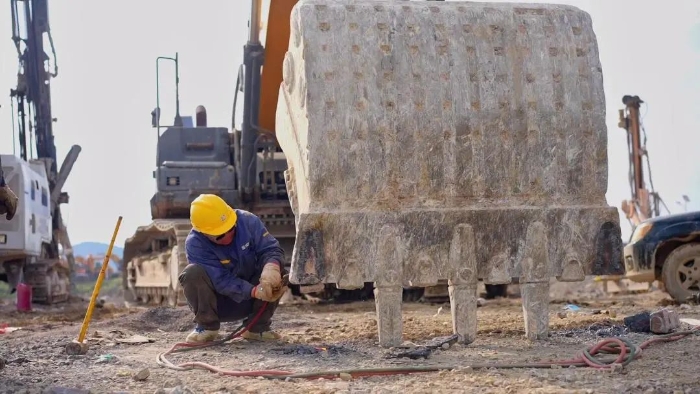 除了為客戶提供機型配置方案、挖掘機與自卸車的配合方案,徐工挖機相關(guān)負責人表示,“我們還根據(jù)平場的物料特點,為客戶選擇了合適的鏟斗、斗齒、釬桿、履帶板等部件。”