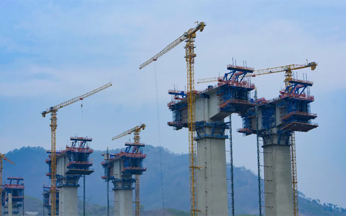 雅長特大橋地處高海拔山區(qū),山坡高聳峻峭,沿線山高谷深,地勢起伏大,相對高差達(dá)270米,使得橋梁工程墩柱高、跨度大、T構(gòu)多。面對超高墩施工風(fēng)險(xiǎn)高、技術(shù)要求高、作業(yè)場地狹窄等難題,十余臺徐工XGT6013-6S1、XGT6515-10S1憑借精準(zhǔn)、高效、安全的吊裝性能,將桁架鋼筋、箱梁護(hù)板等部件吊至百米高空,為項(xiàng)目建設(shè)提質(zhì)增效。