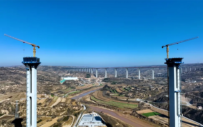 在廣袤的隴東地區(qū),寒風(fēng)凜冽,穿過(guò)層層大霧,俯瞰馬蓮河特大橋,似玉帶嵌入黃土高原,矗立河道旁的橋墩似根根“擎天柱”,徐工S1系列塔機(jī)正如火如荼加速建設(shè),用奮斗的激情創(chuàng)造橋梁施工典范。