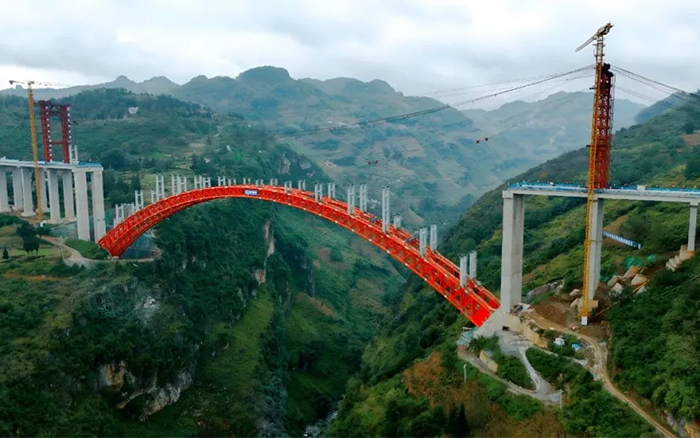 “這座橋工期緊,技術(shù)難度大,吊裝過程中構(gòu)件結(jié)構(gòu)重、空間姿態(tài)調(diào)整難度高,給項目施工帶來了一定困難?!卑姿犹卮髽蝽椖康匿摻Y(jié)構(gòu)負責人毛宗宇說。白水河特大橋主橋采用跨徑340m的上承式鋼管混凝土變截面桁架拱橋,全橋共設計58個吊裝節(jié)段,在百米高空中完成拼裝,而誤差要保持在毫米級,這些為塔機施工帶來了高難度挑戰(zhàn)。