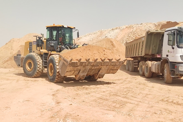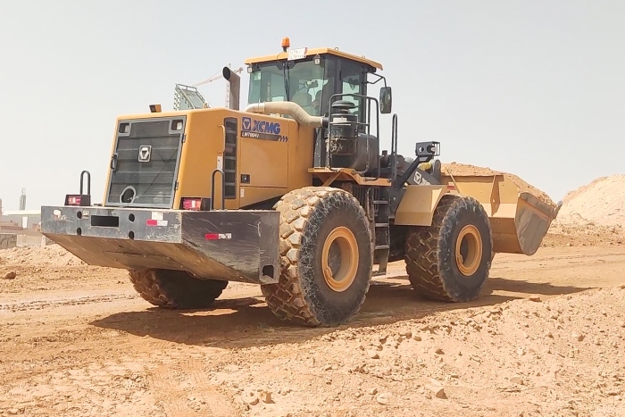 中東當(dāng)?shù)匾蛔笮凸珗@的建設(shè)現(xiàn)場,徐工LW700HV正熱火朝天地干著。