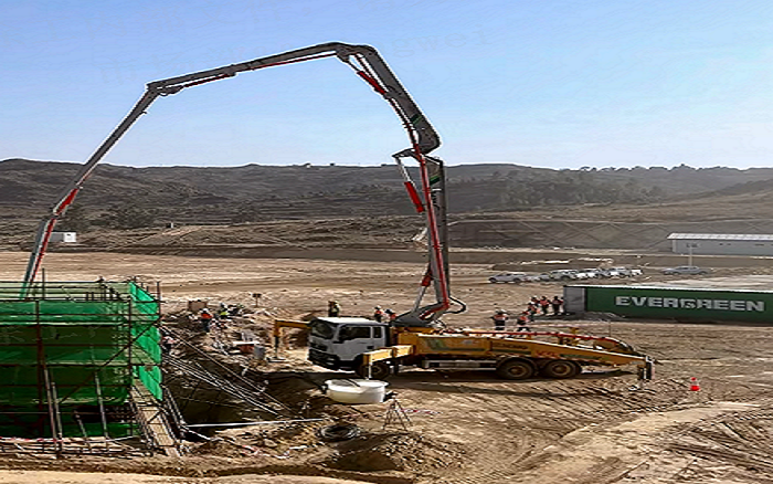 此次工程不僅面臨施工設(shè)備和材料供應(yīng)奇缺等難題,且厄籍職工沒有大型混凝土澆筑經(jīng)驗,加之項目澆筑需要長時間、大方量的持續(xù)性作業(yè),施工困難重重。徐工HB43V泵車和徐工攪拌車協(xié)力共進(jìn),完美應(yīng)對此次澆筑任務(wù)。