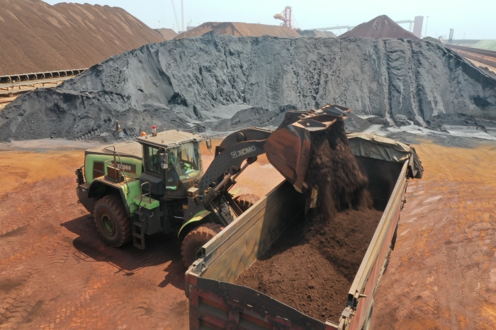 在日照港嵐山港區(qū),徐工8T新能源裝載機投入使用。