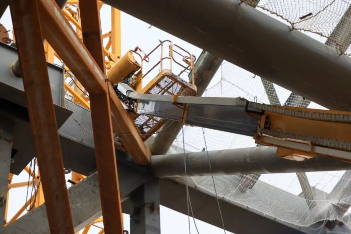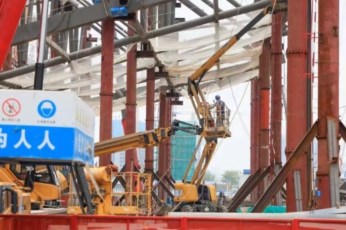 此次施工的主力產(chǎn)品為徐工的XGS22K 、XGS28K、XGS40K三款車型,這三款車型作業(yè)幅度分別是17.2米、22米和24.9米,再加上帶有一節(jié)小飛臂的設(shè)計,使得其跨障能力強,更適宜現(xiàn)場這種復雜且密集的鋼結(jié)構(gòu)作業(yè)。160°的平臺回轉(zhuǎn)角度,也賦予了它更加靈活的使用方法。