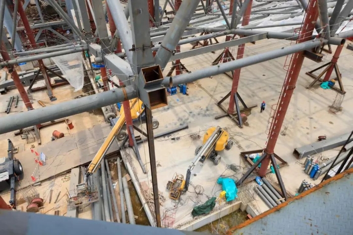深圳前海,全球規(guī)模最大、國內(nèi)落差最高的室內(nèi)滑雪場——華發(fā)冰雪世界滑雪場,正在如火如荼的施工中。