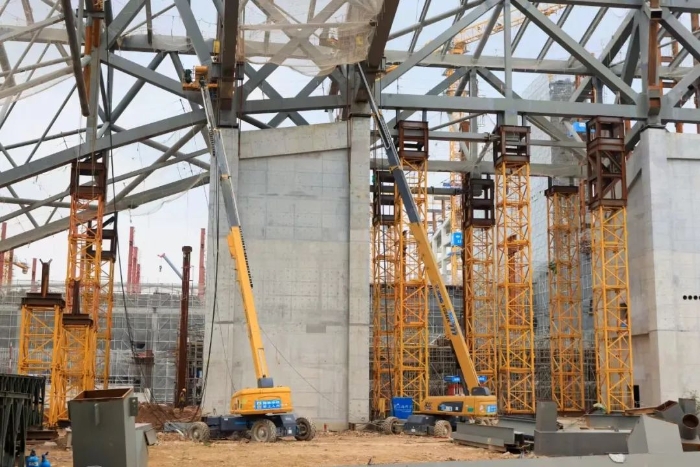 忙碌的工地上,隨處可見“徐工金”辛勞的身影。此次參與施工的有四十余臺徐工高空作業(yè)平臺,高度從22米到40米不等,主要負責場館鋼結(jié)構(gòu)的安裝工作。