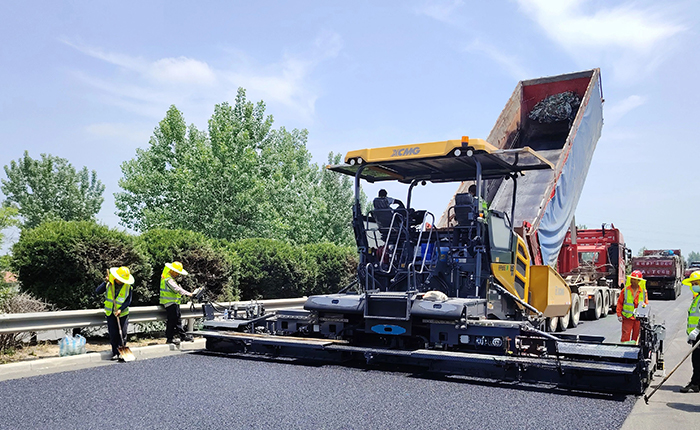 在之前進行的淮徐高速瀝青路面施工養(yǎng)護工程中,施工方采用徐工RP905IV攤鋪機進行路面的攤鋪工作。作為徐工熱銷款攤鋪設(shè)備之一,RP905IV具有高效、穩(wěn)定和精確的攤鋪能力。本次施工中,高速公路攤鋪寬度8m,攤鋪厚度為4.8cm,RP905IV為項目的油面施工提供了高質(zhì)量保障。