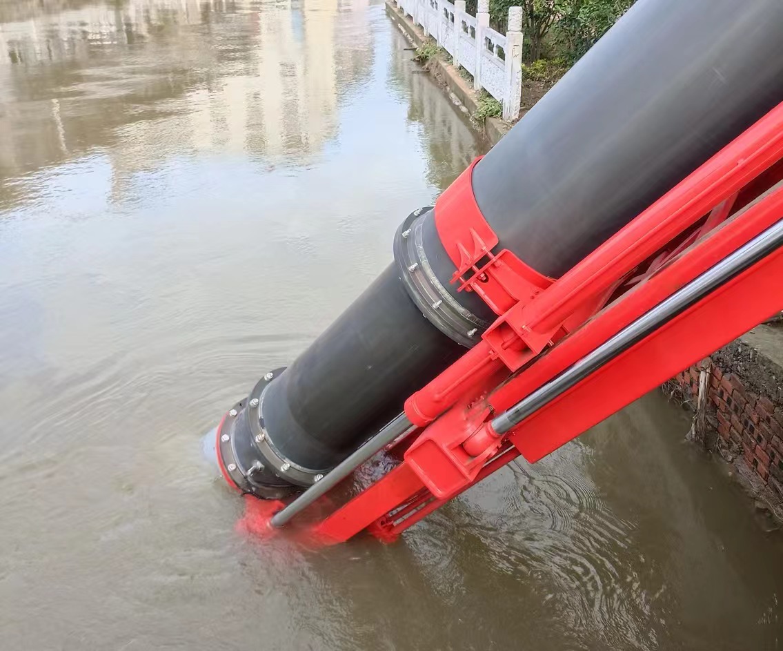 三龍支河經(jīng)縣城涵洞匯入蕭縣母親河——龍河,由于入河口的河道涵洞較小、流速較慢,難以承載過多排水量,雨停后水位仍遲遲不降,嚴(yán)重影響河道兩側(cè)居民生活。徐工救援人員聞“汛”而動(dòng),立刻趕往現(xiàn)場(chǎng)。