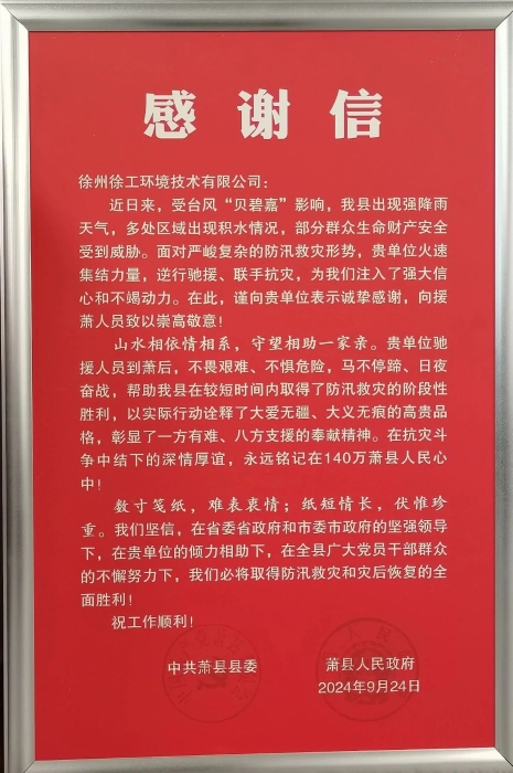 “此行是專(zhuān)門(mén)來(lái)感謝徐工在蕭縣防汛救災(zāi)中的無(wú)私奉獻(xiàn)?!?/strong>董局長(zhǎng)表示,“你們的行動(dòng)不僅體現(xiàn)了徐工的社會(huì)責(zé)任感,更讓我們感受到了‘防汛救災(zāi)顯大愛(ài) 風(fēng)雨同舟見(jiàn)真情’的深刻內(nèi)涵。我們特地做了錦旗和感謝信,來(lái)表達(dá)我們的謝意?!?/span>