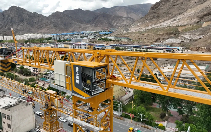 在祖國西南的雪域高原,堆龍德慶的藏語意為“上谷極樂之地”,位于拉薩河與堆龍河兩岸,平均海拔4500米,念青唐古拉山的兩條支脈,逶迤縣境南北。4500米的高海拔作業(yè),空氣稀薄、晝夜溫差極大、風(fēng)力強、風(fēng)速大、極端天氣多,都是徐工塔機面臨的嚴(yán)峻工況考驗。