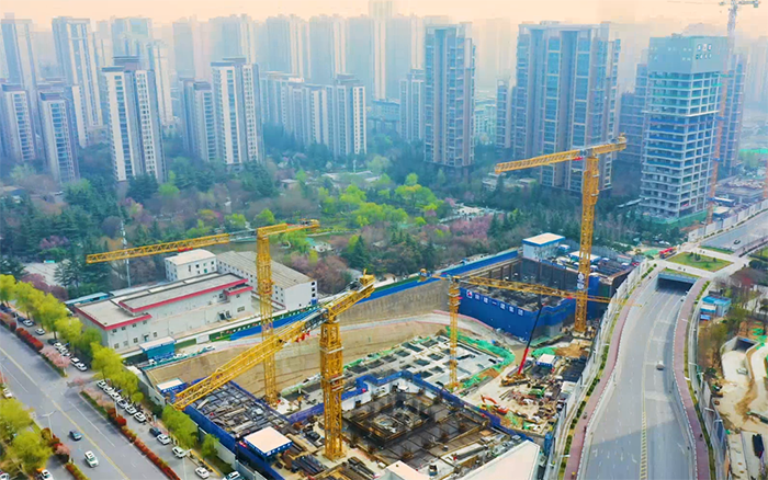 兩臺徐工超大噸位塔機XGT1350-64S是該項目的吊裝主力軍,主要負(fù)責(zé)鋼結(jié)構(gòu)及主體施工材料的吊裝工作,與徐工XGT600-25S、XGT6015-8S1配合作業(yè),為古城西安再添城市CBD。