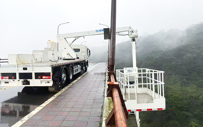 在檢測(cè)現(xiàn)場(chǎng),徐工 QJZ18 大顯身手。其最大跨寬 4.4 米、最大跨高 5.6 米,水平作業(yè)幅度達(dá) 18 米,輕松跨越復(fù)雜橋體,快速抵達(dá)指定檢測(cè)點(diǎn)。施工單位現(xiàn)場(chǎng)負(fù)責(zé)人感慨:“以前檢測(cè)這種大橋,調(diào)整設(shè)備位置耗時(shí)久,效率低,現(xiàn)在有了徐工 QJZ18,效率大幅提升?!?其 270kg 承載的作業(yè)平臺(tái),讓檢測(cè)人員能便捷攜帶儀器,細(xì)致檢測(cè)橋梁各處。