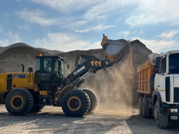 西亞某礦山,一臺LW600KN正高速運轉(zhuǎn),將滿載的一鏟鏟剛開采出的砂石料裝車發(fā)往建設現(xiàn)場,助力當?shù)亟ㄔO。