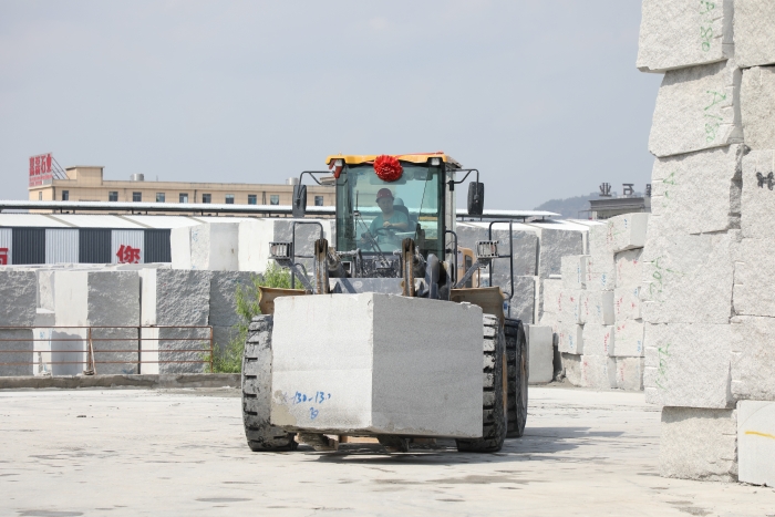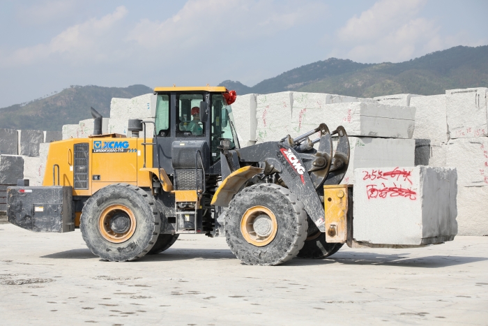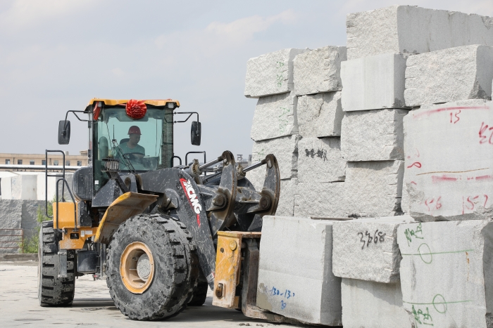 高檔花崗巖石材,以其優(yōu)美的外觀、堅硬的質地,一直是公共設施外立面裝飾的首選。客戶用的這臺徐工LW500KV(GIV)-T18石材叉裝機已在石材加工廠使用兩年,“相比過去用的車,操控輕松方便,視野很開闊,在復雜工作環(huán)境下也非常穩(wěn)定可靠,干活效率高?!瘪{駛員對徐工石材叉裝機贊賞有加。