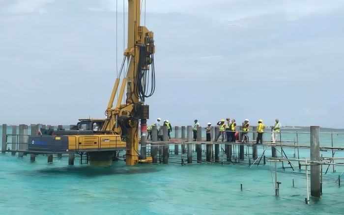 本次施工項(xiàng)目地質(zhì)條件復(fù)雜,表層為松散砂質(zhì)土,下層為密實(shí)珊瑚巖層,對(duì)樁基施工的精度與設(shè)備性能提出了嚴(yán)峻挑戰(zhàn)。