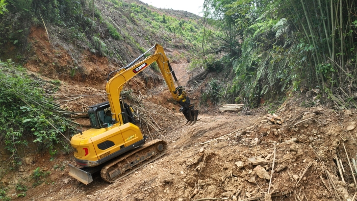 在鄭俊回鄉(xiāng)之前,父輩大多是靠人工作業(yè),僅有的設(shè)備就是幾臺非常低端的輪挖,也就能夾裝木材,偶爾修修路的話,平整度、壓實度都很差,大車走幾趟就壞了,遇到稍微陡一點(diǎn)的坡也上不去,嚴(yán)重影響了作業(yè)進(jìn)度。