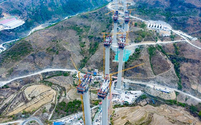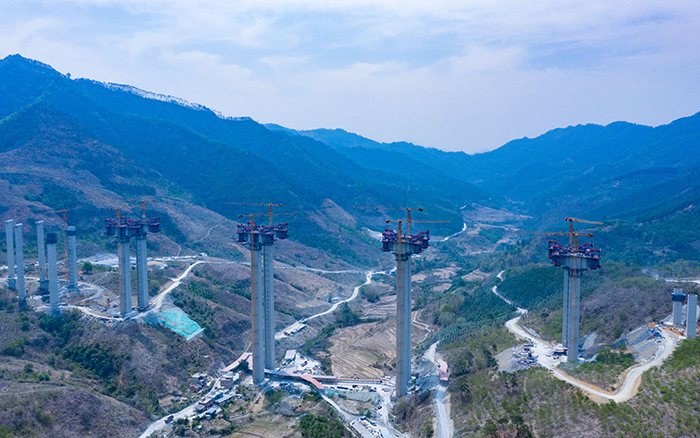 蒼翠延綿的群山深處,一根根百米高墩拔地而起,自東向西整齊排列,二十余臺徐工S1系列塔機、施工升降機與青山比肩,正有條不紊地吊裝,助力雅長特大橋建設(shè)加速。