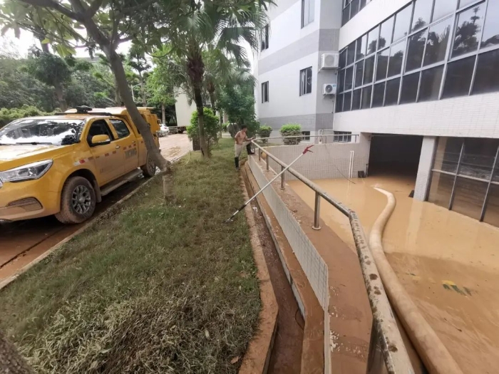 懷集縣人民檢察院地下車庫遭大量積水倒灌,水位迅速上漲,停放車輛和設(shè)施面臨嚴重威脅。由于地下車庫空間狹窄,大型救援車輛難以施展身手,排澇工作陷入困境。
