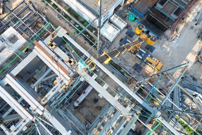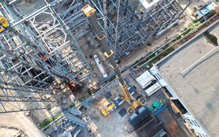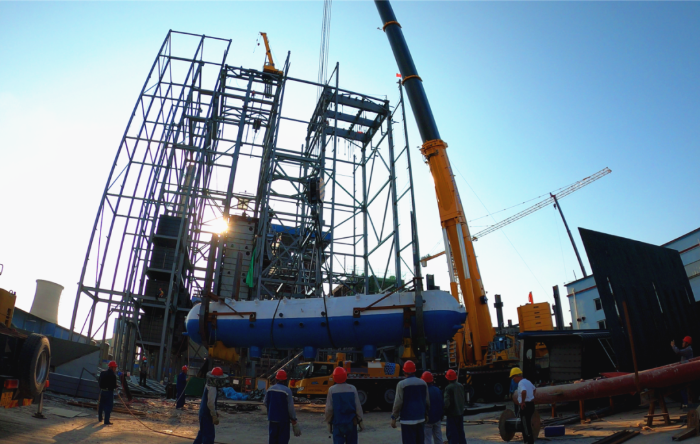 由于場地狹窄,障礙物環(huán)繞,集氣包還需精準送入已建車間內(nèi)部,車間上方同樣阻礙重重,給施工增加了難度。