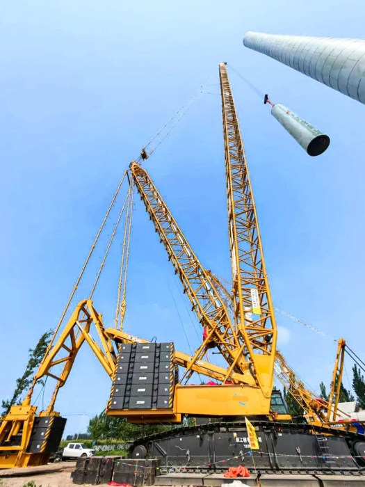 近日,山東大型風(fēng)電場迎來關(guān)鍵突破,徐工集團(tuán)最新研發(fā)的千噸級風(fēng)電旗艦產(chǎn)品——首臺XLC15000M(1100噸級)履帶起重機(jī)正式投入實戰(zhàn),在華東新能源建設(shè)一線完成首次吊裝任務(wù)。