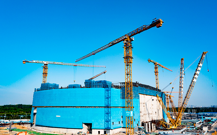 在合肥未來大科學城的核心區(qū)域,多臺徐工XGT800-40S、XGT600-25S正在系湊型聚變能實驗裝置園區(qū)(BEST)項目上火熱施工。