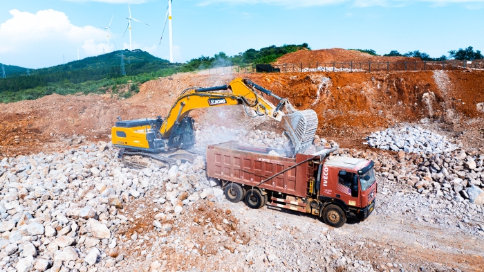 湖北宜城礦區(qū)深處,白云巖資源富集,開(kāi)采作業(yè)正酣。徐工XE500GK液壓挖掘機(jī)以主力姿態(tài)投身于繁忙的開(kāi)采隊(duì)伍當(dāng)中,以卓越性能與可靠品質(zhì),贏得施工方高度認(rèn)可,成為這片堅(jiān)硬巖層中名副其實(shí)的“掘金巨無(wú)霸”。